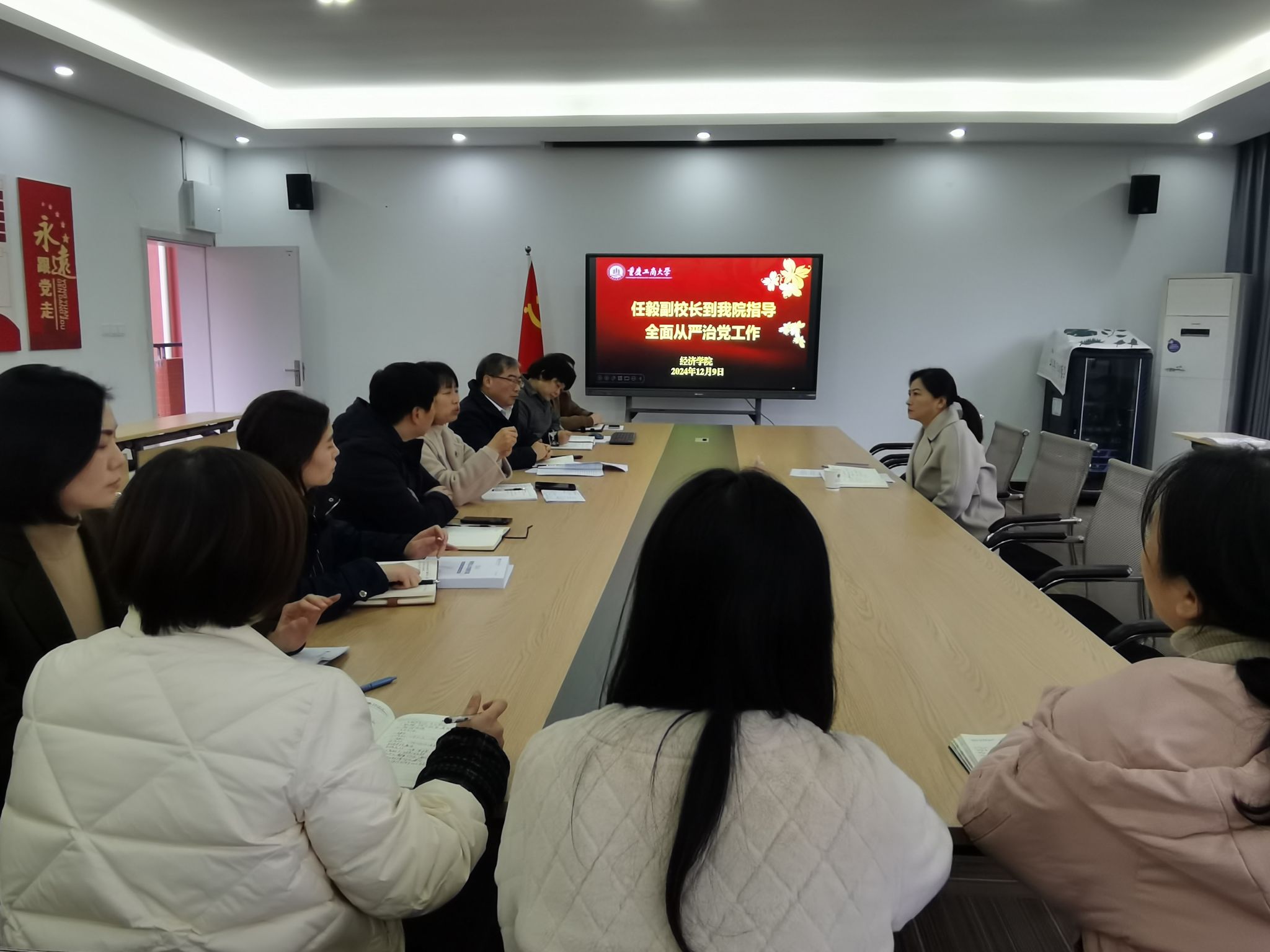 2024年12月9日,校党委常委、副校长任毅来到304永利集团官网入口调研指导全面从严治党工作。学院书记唐春秋、院长宋瑛、副书记、纪委书记白海龙、副院长尹元福、副院长李颖慧、正处级专职组织员雷菁、成渝地区双城经济圈建设研究院副院长黄潇及办公室相关人员参加。