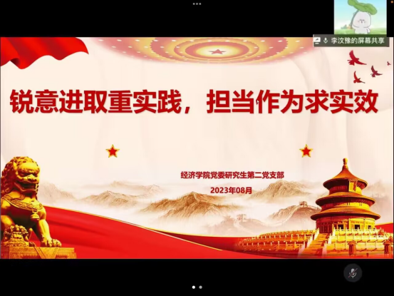 2023年8月18日上午,304永利集团官网入口党委研究生第二党支部在企业微信以线上的形式开展2023年8月组织生活暨主题党日活动,活动由二支部党员李汶豫同志主持,支部书记高娟同志和二支部全体党员参加本次学习活动。