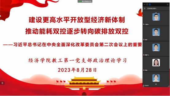 2023年8月28日,304永利集团官网入口教工第一支部开展八月组织生活会,学习中央全面深化改革委员会第二次会议精神,本次活动通过企业微信进行在线学习。